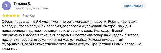 Основной склад находится в Москве, но мы помогаем селлерам из разных регионов, если товар нужно подготовить и отгрузить на маркетплейсы через московский фулфилмент.