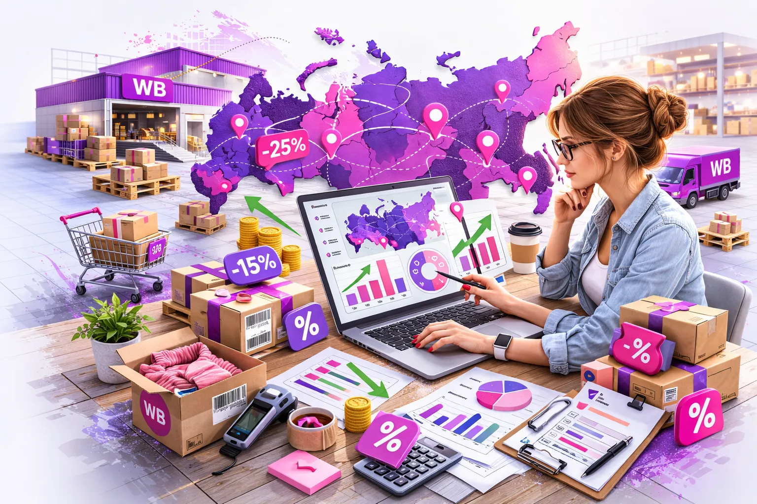 Приемка, проверка, маркировка, упаковка, хранение и отгрузка товаров на маркетплейсы. Управляйте складом без стресса и разрыва чакры. Меньше ошибок, Меньше штрафов, Больше продаж!